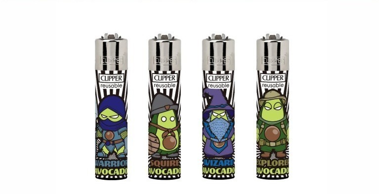 Clipper 4 x avocado man Refillable Lighters collectable set of 4+ bonus