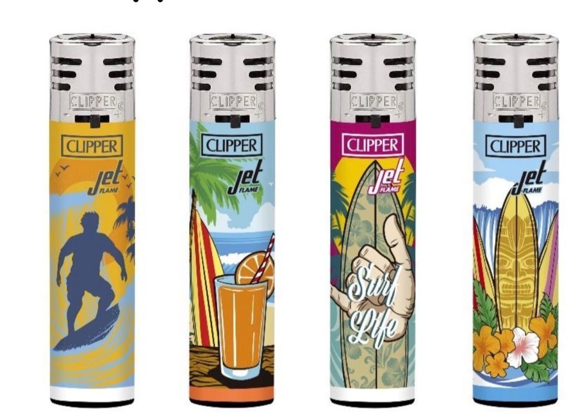 clipper lighters Jet flame SURF LIF set of 4 WINDPROOF Adjustable flame collec