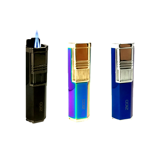 ZICO TORCH LIGHTER TWIN JET FLAME GAS REFILLABLE MULTI-COLOUR CIGAR PUNCH T130